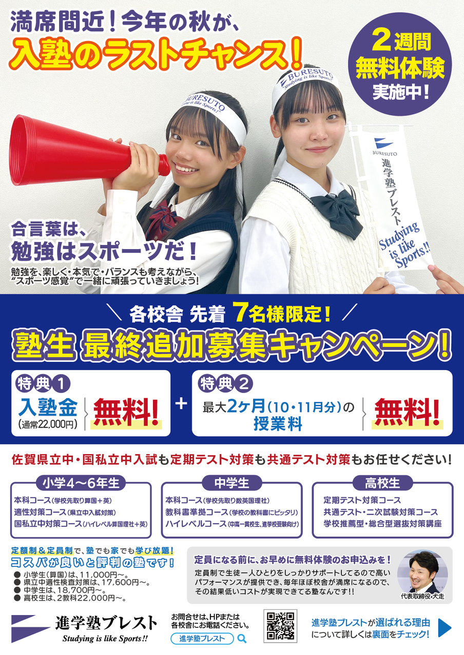 〈今なら‼️各校舎先着7名さま入塾特典〉